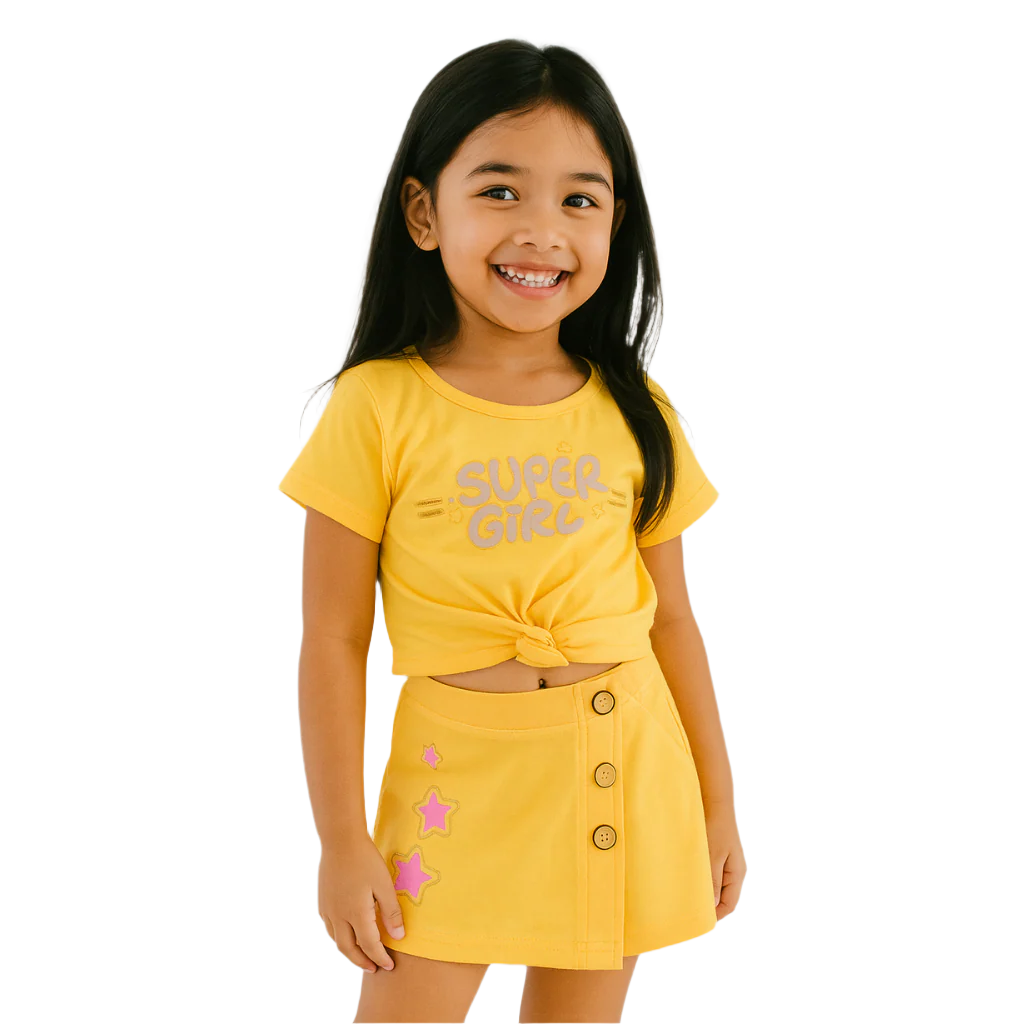 BabyChirp Girls Super Girl Print Cotton Lemon Skort Set – 2-Piece Outfit in Yellow (1–7 Years)